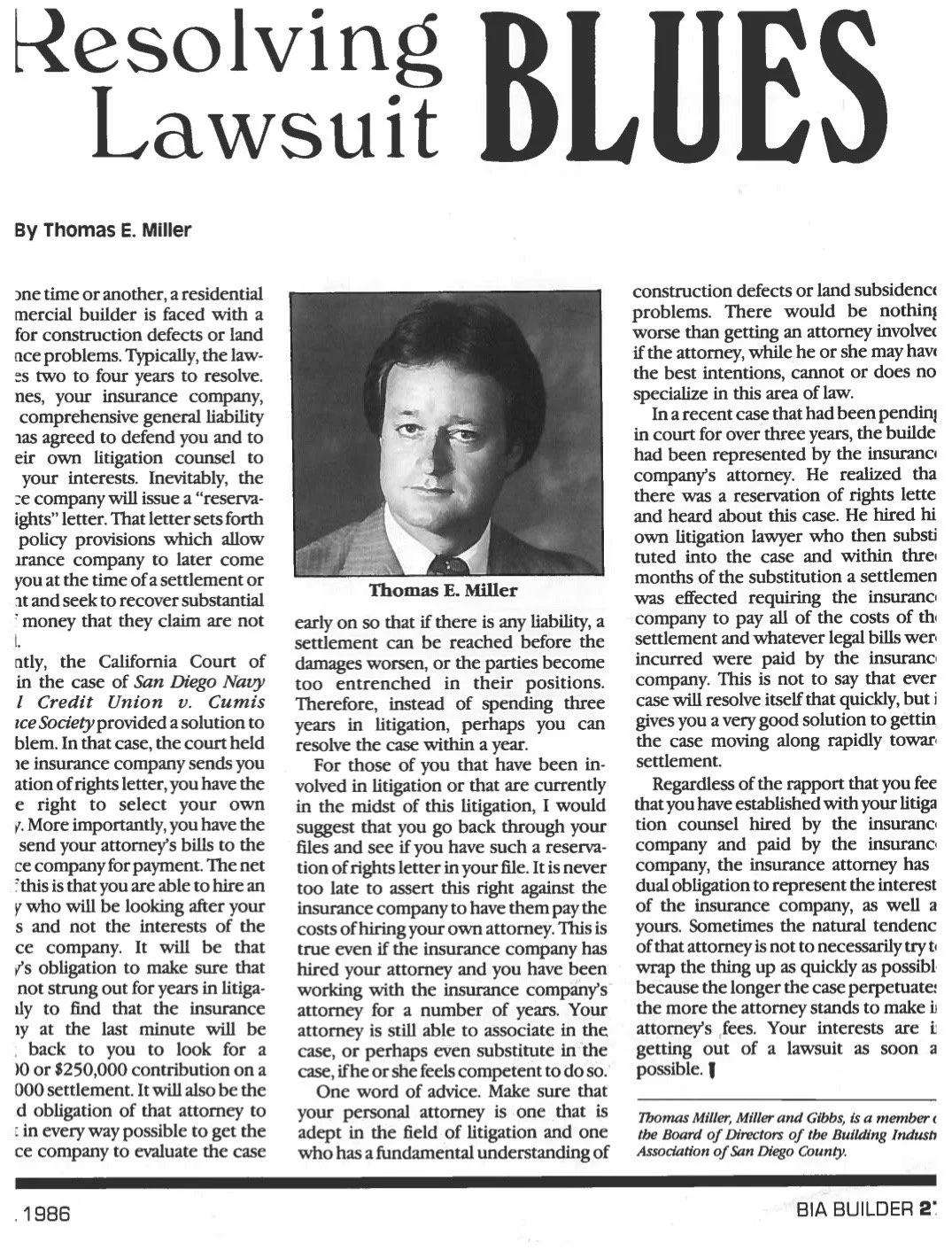 Founded as The Law Offices of Thomas E. Miller in San Diego